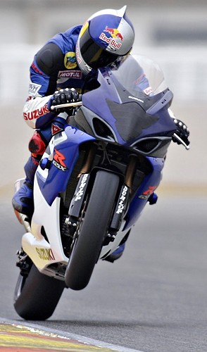 Andy auf einer GSXR1000 K5 beim Testen, wahrscheinlich auf seiner Hausstrecke dem Panoniaring in Ungarn. |