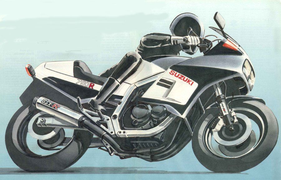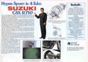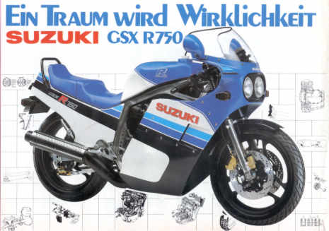 Am 29.08.1984 wird eine Zeichnung (Heft 18, MOTORRAD) der neuen GSX-R750 in Umlauf gebracht. Mit Blitz und Donner startet damit eine beispiellose Karriere der