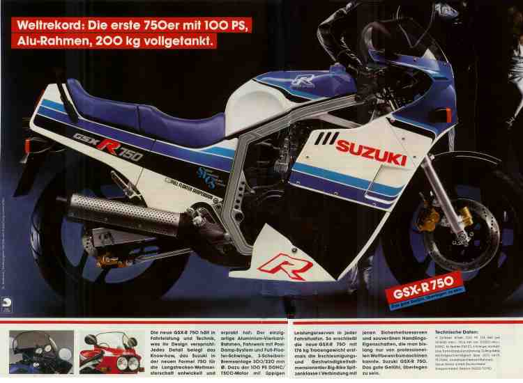 Maximalhubraum keine adäquaten Modelle mehr im Programm haben. Die erste Modellreihe der GSX-R 750, damals noch mit luft-/ölgekühltem