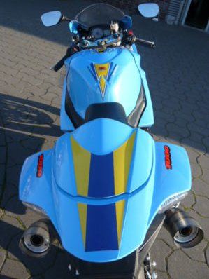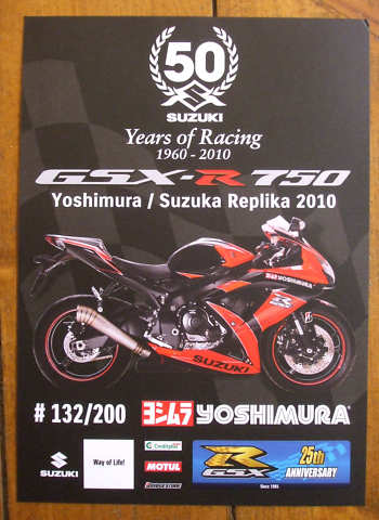 durchnummerierte GSX-R 1000 K8 RIZLA EDITION auch eine Yoshimura GP EVO II-Auspuffanlage aus Titan mit zwei aufwändig geschwungen verschweißten, superleichten Auspuffendrohren, wie sie in ähnlicher Form auch bei den