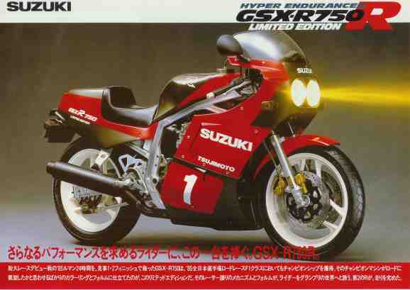 Rennversion der GSX-R750, einer Racing- Version ( Bild unten). Die Sonderserie zum Baujahr 1986 wurde in einer Stückzahl von 1000 Exemplaren aufgelegt. Hiervon kamen aber nur 200 Exemplare nach Deutschland.