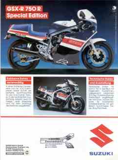 Leichter Hinweis auch hier auf die LTD mit den Worten 'die neue Special Edition'. - Im Histroy Book ... 85-00 von Suzuki Japan, werden alle GSX-R Motoräder mit Bild und Text