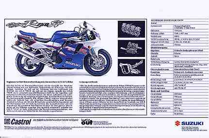 LTD were real single seaters. The marketing flash in 1994 was: begin your racing, prepare with a genuine Suzuki full-blood. The bike corresponded to the 1994 FIM- rules for the superbike- and the