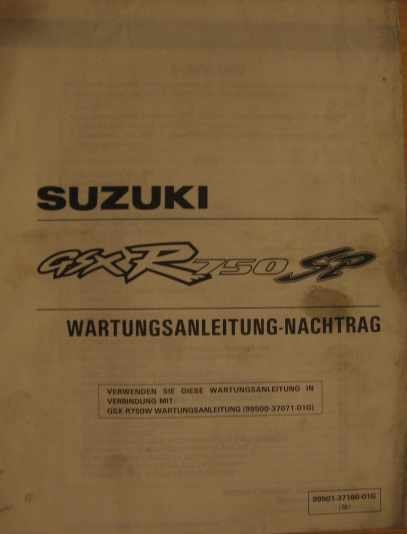 (tecnical specification) Hersteller( manufactor): Suzuki Verkaufsbezeichnung ( sales description): GSX-R 750 SP Typ und Ausführung (modelltype): GR7BB Fahrzeug- Ident- Nr ( model ID). GR7BB 108 8.. Antriebsart (engine concept): Otto Leistung ( power)